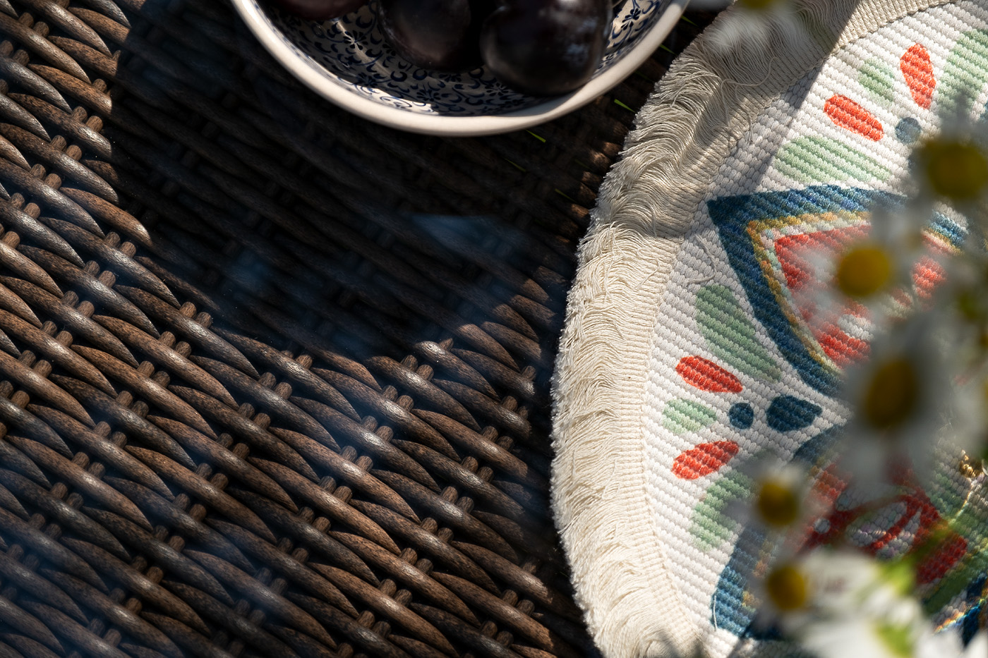 Плетеный столик укомплектован столешницей из закаленного стекла, толщиной – 5 мм.