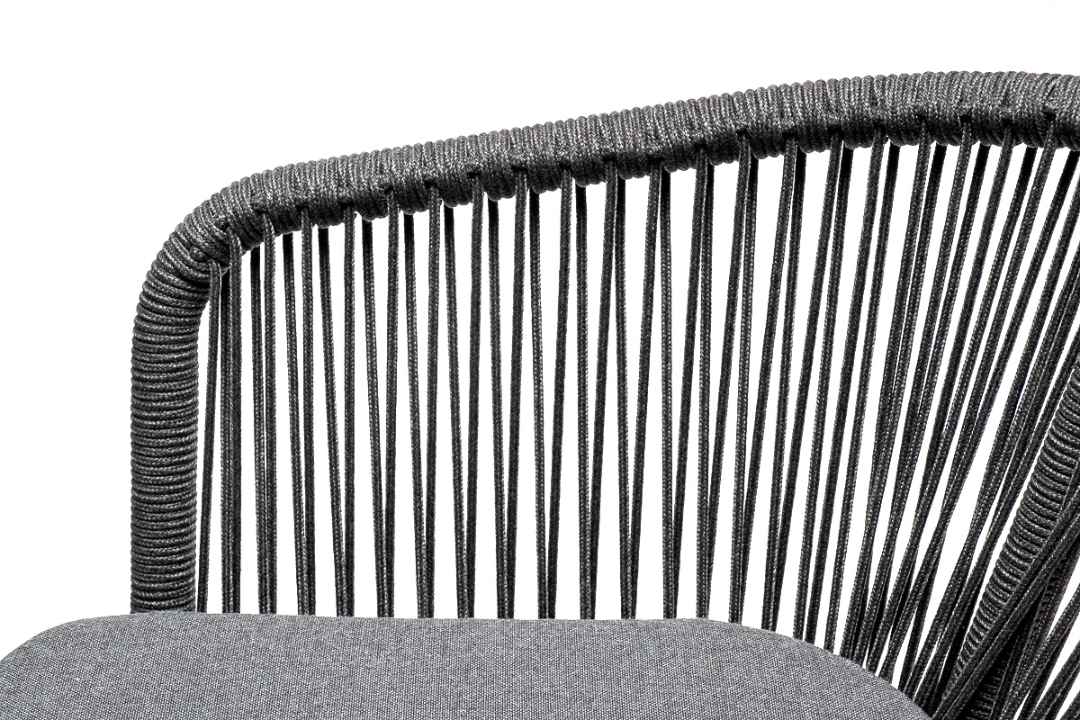 - 6 плетеных стульев «Марсель» из роупа, размером - 570×620×775 мм, цвет роупа - темно-серый, каркас из алюминия, окрашен порошковой краской в темно-серый оттенок.