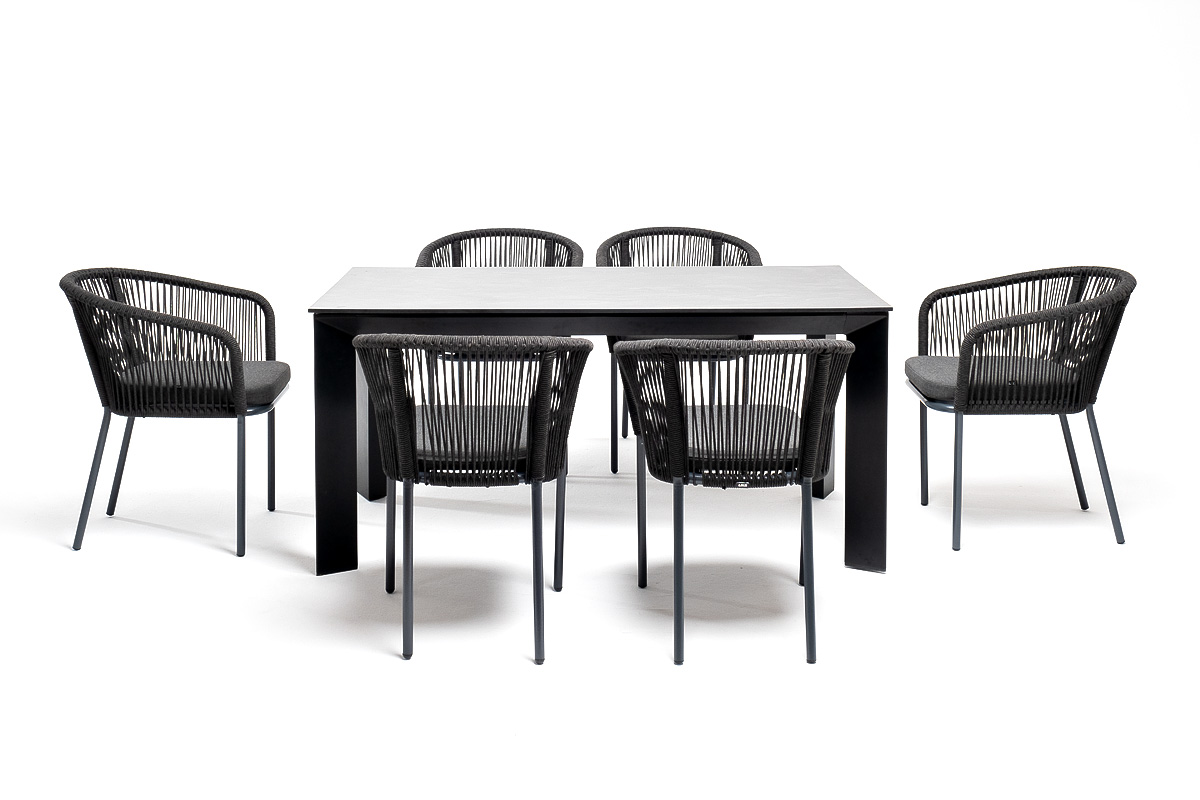 "Венето" обеденная группа на 6 персон со стульями "Марсель", каркас темно-серый, роуп темно-серый