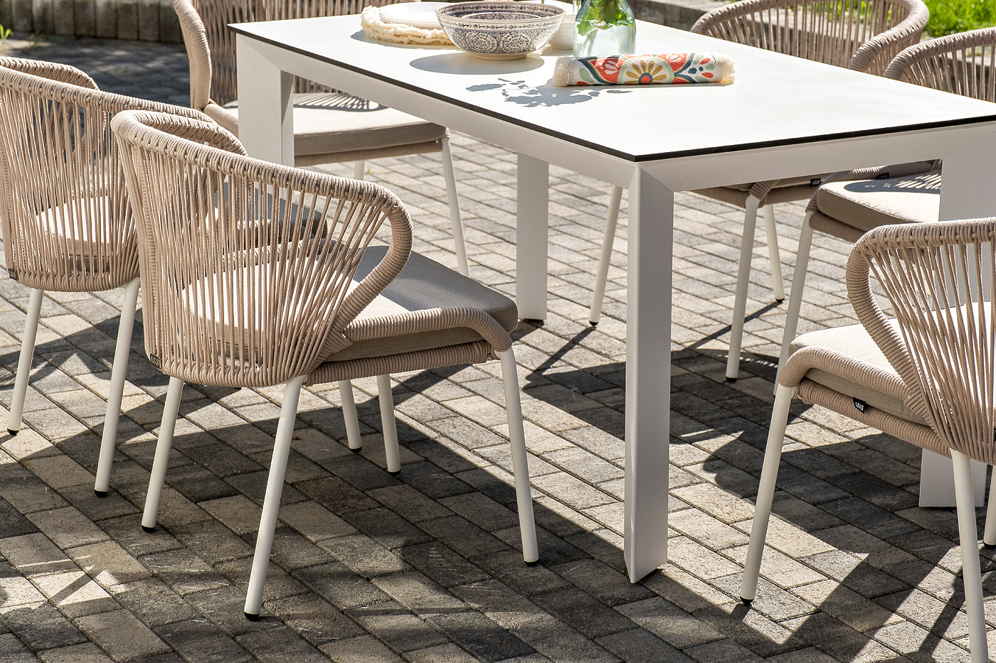 "Венето" обеденная группа на 6 персон со стульями "Милан", каркас белый, роуп бежевый